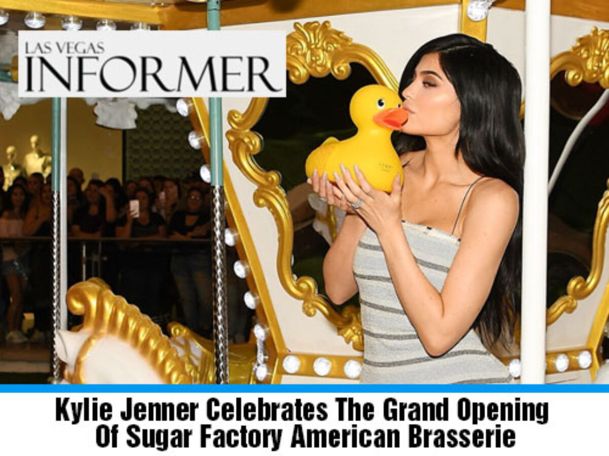 On Saturday night, Kylie Jenner continued the grand opening celebration of Sugar Factory Las Vegas. Kylie arrived with her crew wearing a pastel blue, grey and white form fitting dress with pastel blue strappy sandals. As soon as Kylie arrived she hit the red carpet but before she could finish her photos animal rights activists began protesting in the crowd.