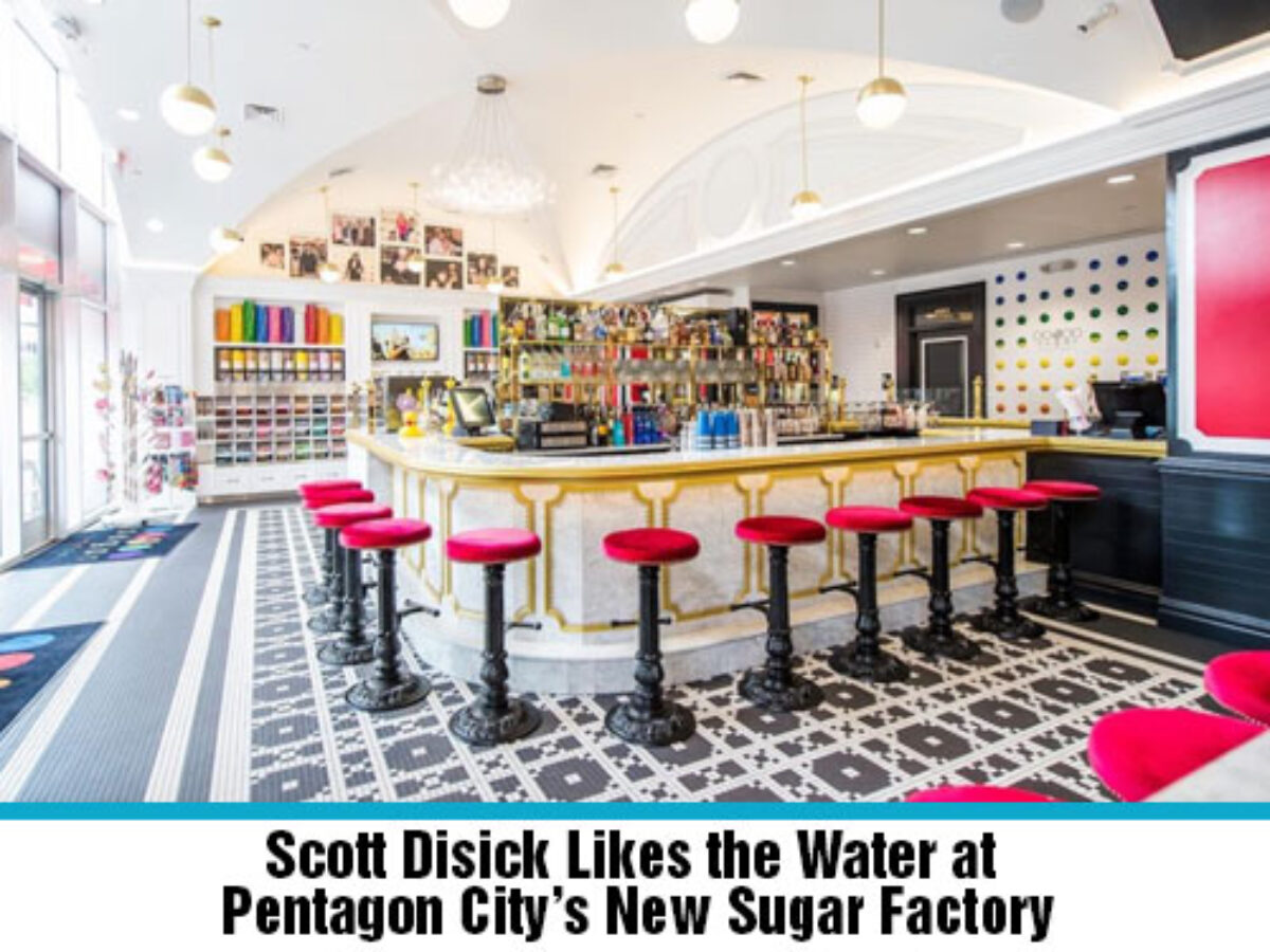International American brasserie chain Sugar Factory opened in the Pentagon City Mall on Thursday with a little celebrity panache from Lord Scott Disick (yes, Kourtney Kardashian ‘s ex was knighted, among other things). Sporting a grungy-casual look, the unshaven reality TV star opted for blemish-free white sneakers, jeans, and a patterned “supreme” jacket.