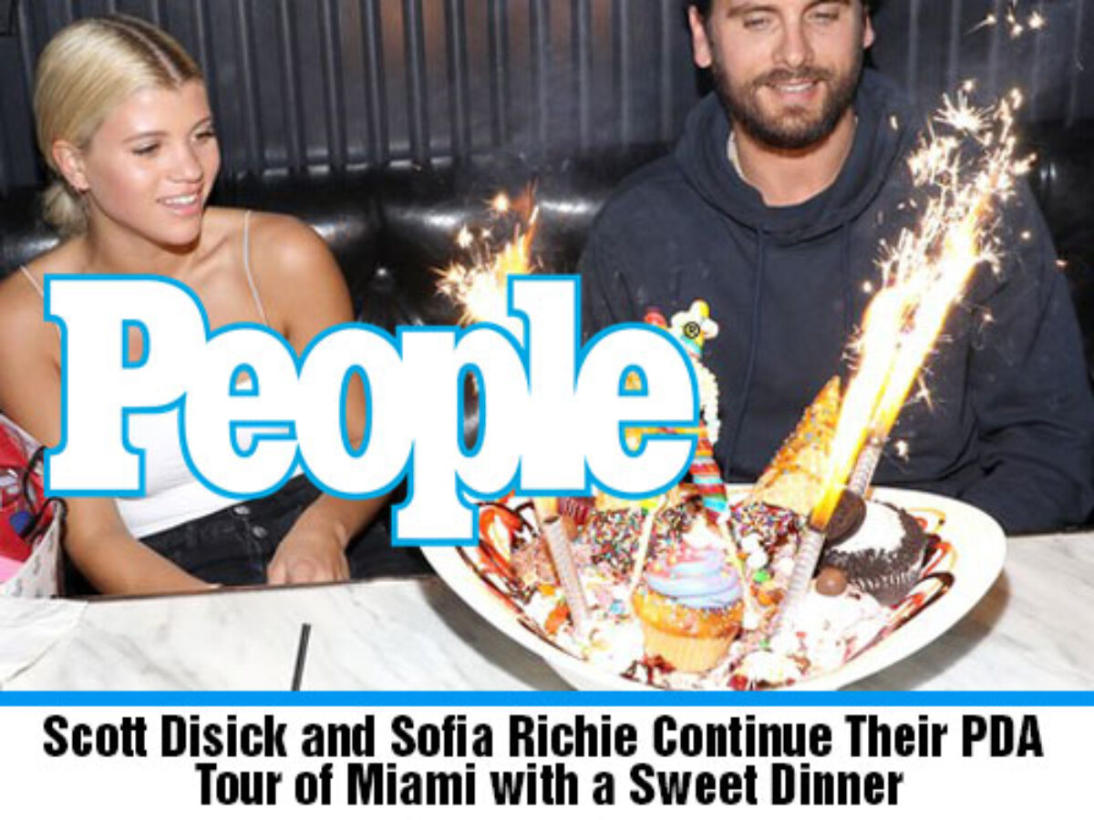 Scott Disick and Sofia Richie Continue Their PDA Tour of Miami with a Sweet Dinner Scott Disick and girlfriend Sofia Richie continued their romantic week in Miami with a sweets – and PDA – filled dinner date at Sugar Factory on Friday night