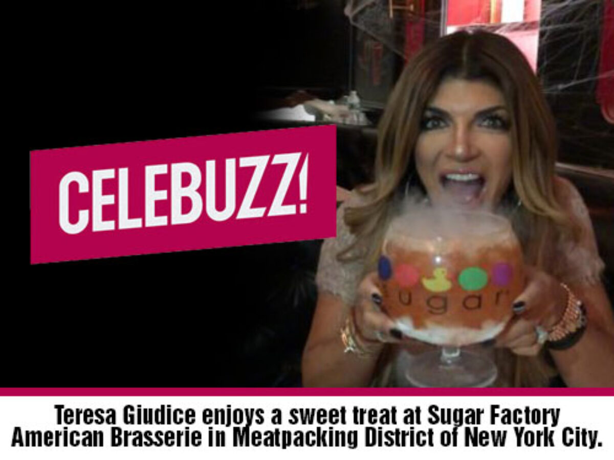 Teresa Giudice enjoys a sweet treat at Sugar Factory American Brasserie in Meatpacking District of New York City.