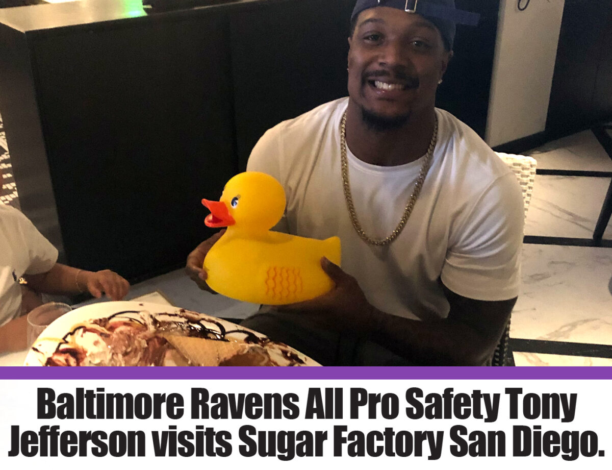 Baltimore Ravens All Pro Safety Tony Jefferson visits Sugar Factory San Diego.