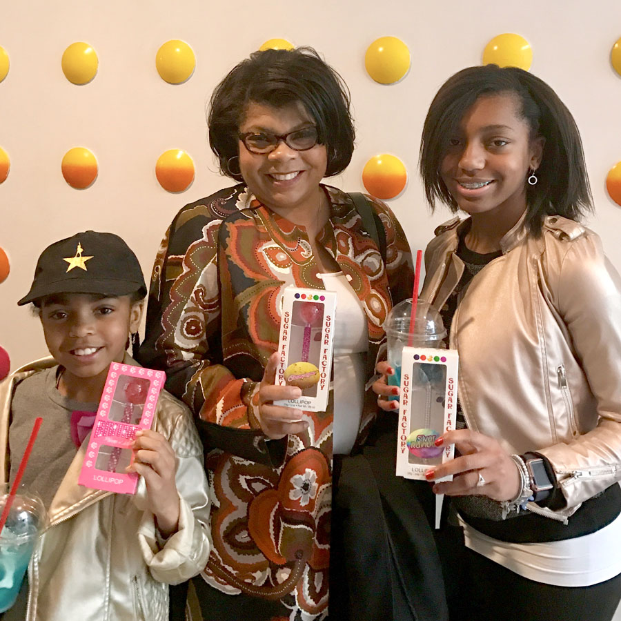 This afternoon CNN reporter and White House correspondent and political analyst April Ryan joined us for brunch with her two daughters. Ms. Ryan and her daughters enjoyed Chicken Fingers, Crepes and Mac N Cheese Balls as well as our Virgin White Gummy Goblet. In speaking with them they were very interested in the new D.C. location opening and made plans with the GM to have the daughter birthday party in D.C. In June! Amazing!!