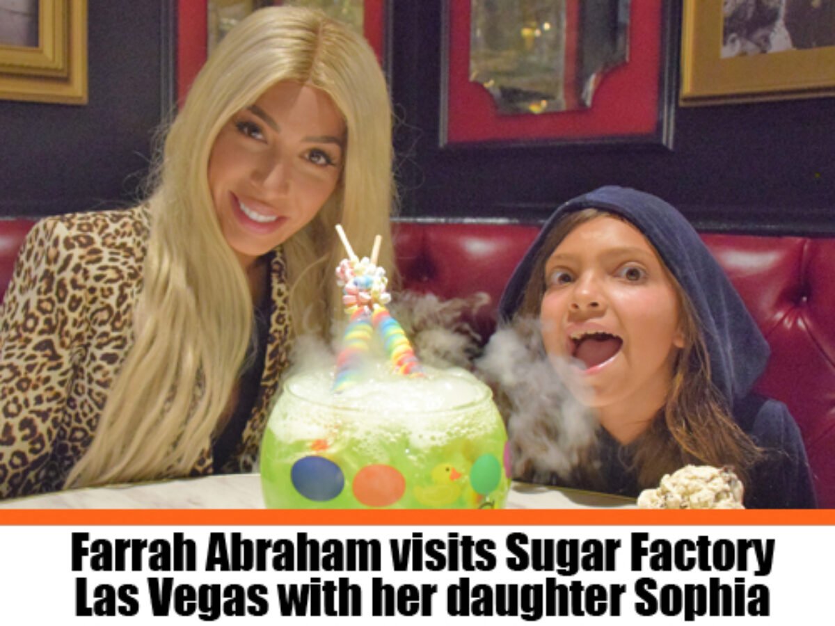 Las Vegas (November 15, 2018) – Farrah Abraham enjoyed dinner at Sugar Factory Las Vegas with her daughter Sophia.