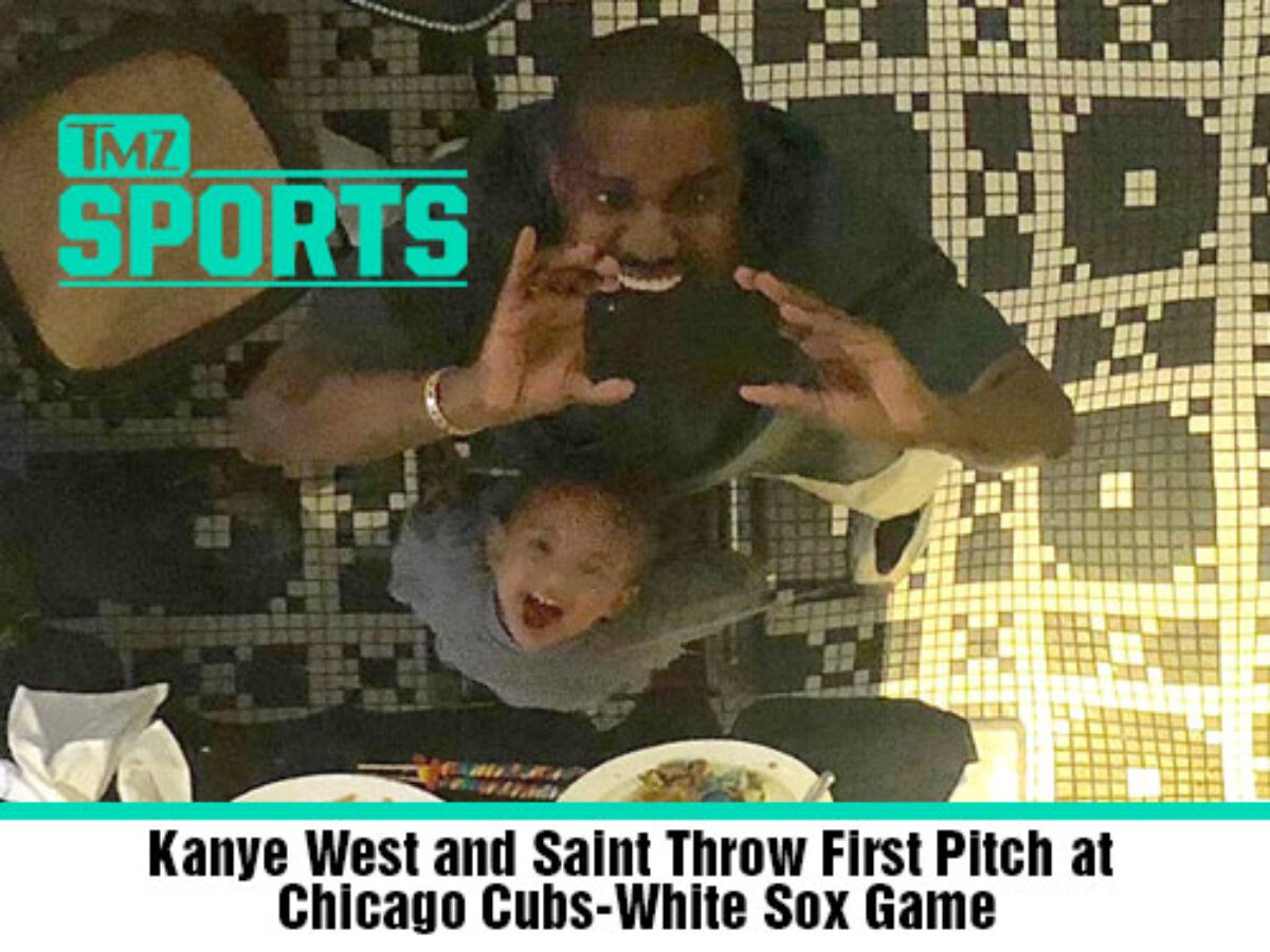 Kanye West & Saint Throw 1st Pitch For Chi-Town Showdown Kanye West made the most of his Chicago homecoming week by capping it off with a visit to the mound with his son, Saint , and two tosses to kick off a crosstown classic rubber match.