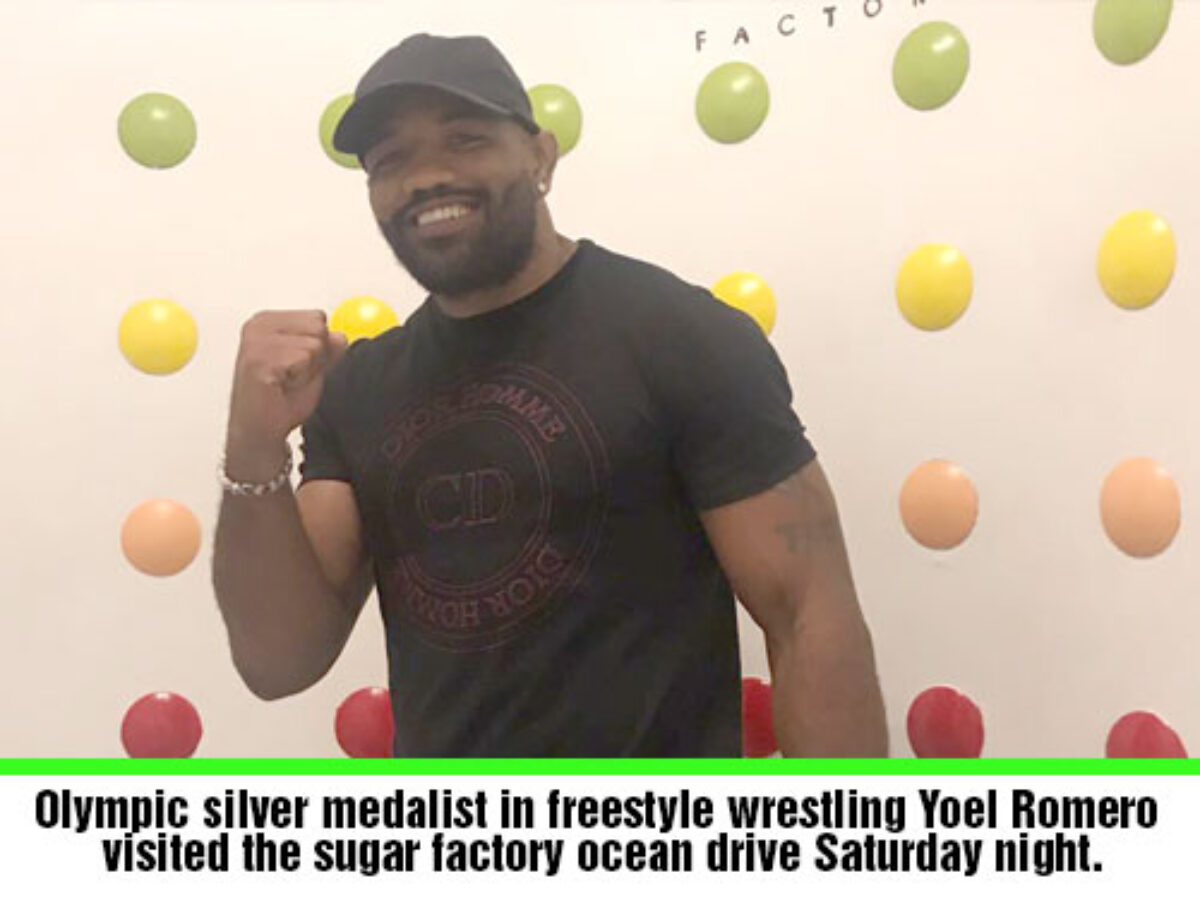 Olympic silver medalist in freestyle wrestling Yoel Romero visited the sugar factory ocean drive Saturday night.