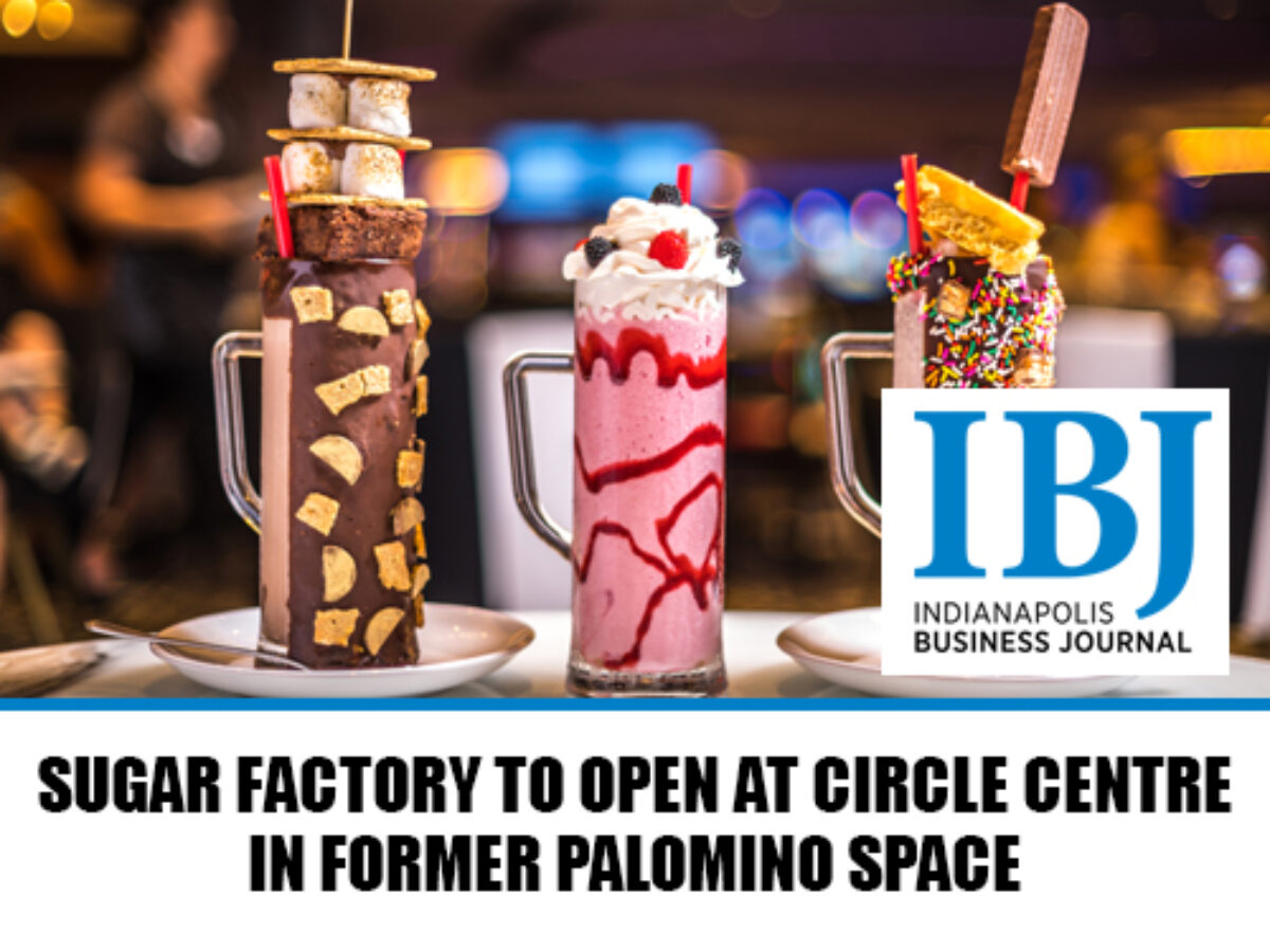 A New York City-based restaurant and candy store chain known for its extravagant desserts, colorful decor and celebrity following is planning to open at Circle Centre in downtown Indianapolis later this year. Sugar Factory-a combination restaurant, bar and candy store-is slated to occupy the former Palomino space at 49 W.